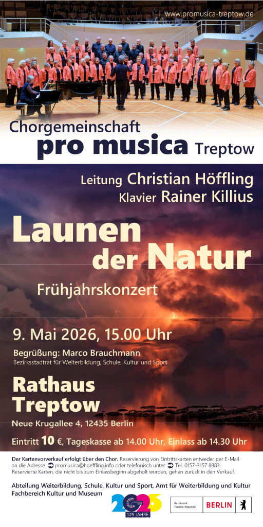 Das verkündeten 2017 die Toten Hosen in ihrem Titel „Laune der Natur“, den wir, einer der größten Seniorenchöre Berlin, uns für das diesjährige Frühjahrkonzert beherzt angeeignet haben.